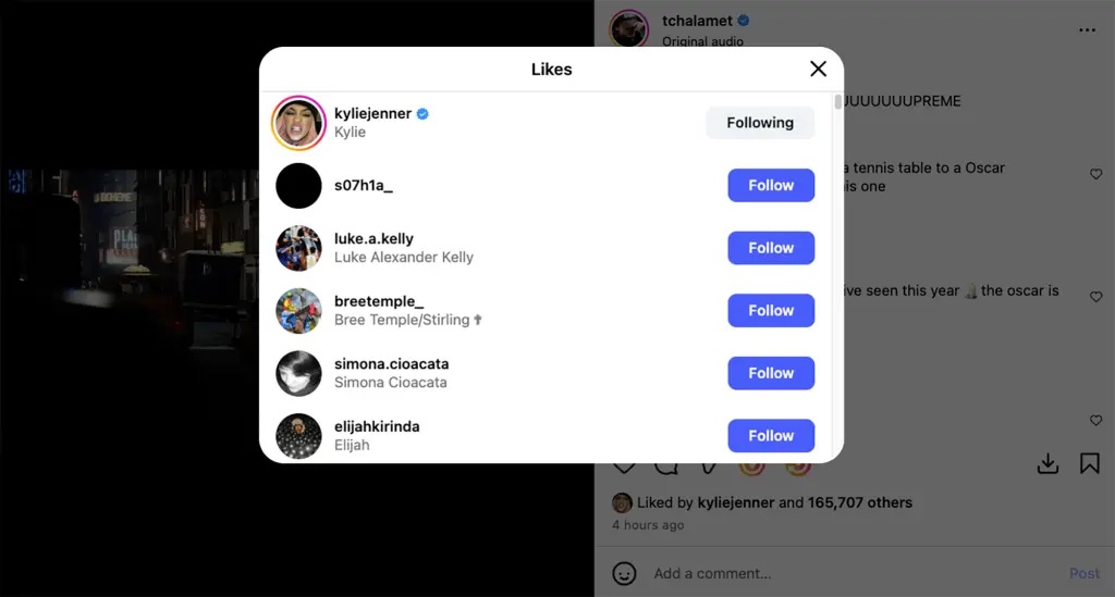 Η Jenner έστειλε το δικό της μήνυμα κάνοντας like στην ανάρτηση του Chalamet, δείχνοντας στους θαυμαστές ότι οι δυο τους είναι ακόμη μαζί και μάλιστα η ίδια είναι υποστηρικτική σύντροφος.