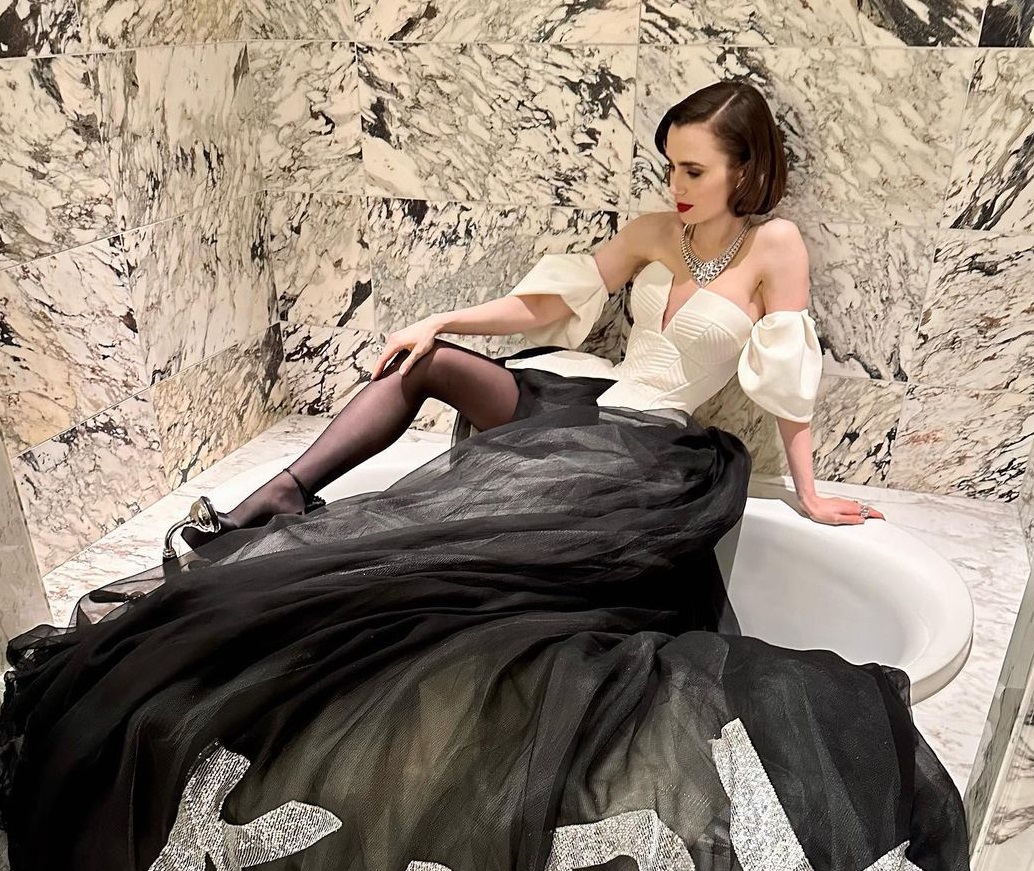 Αν και δεν παρέστη στα τελευταία Met Gala, η Lily Collins επέλεξε φέτος να ακολουθήσει την παράδοση που έχει καθιερώσει, να φωτογραφίζεται με το φόρεμα που επιλέγει για τη λαμπερή εκδήλωση, ενώ βρίσκεται στην μπανιέρα του ξενοδοχείου της.
