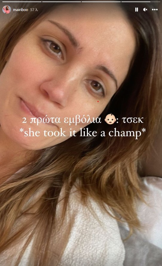 “2 πρώτα εμβόλια: τσεκ. Τα αντιμετώπισε σαν πρωταθλήτρια”, έγραψε η Μαίρη Συνατσάκη.