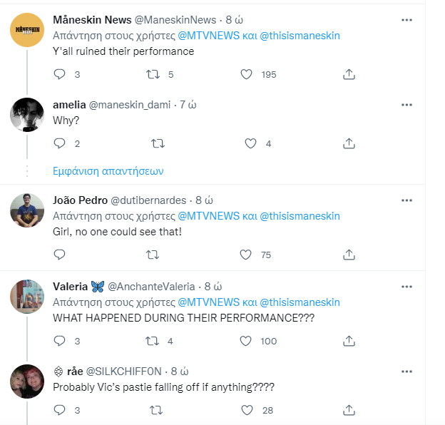 Οι θαυμαστές ξέσπασαν στο twitter αντιδρώντας για την επιλογή των ιθυνόντων να μην δείξουν όπως έπρεπε την εκπληκτική ροκ εμφάνιση των Måneskin κατηγορώντας τους ότι την κατέστρεψαν.