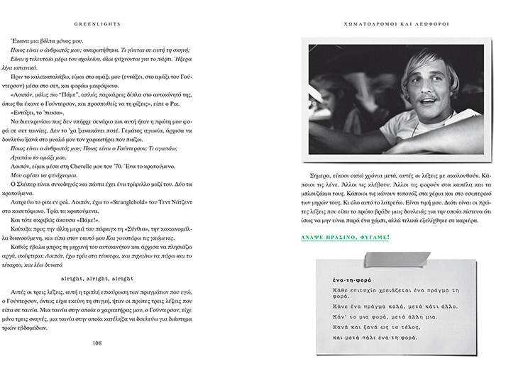 Έχουμε δει πολλούς χολιγουντιανούς αστέρες να γράφουν βιβλία για τη ζωή τους, που όμως δεν κάνουν πωλήσεις. Το Greenlights που κυκλοφορεί στα ελληνικά με τίτλο Greenlights – Άναψε πράσινο, φύγαμε! από τις εκδόσεις Πεδίο δεν είναι ένα από αυτά.