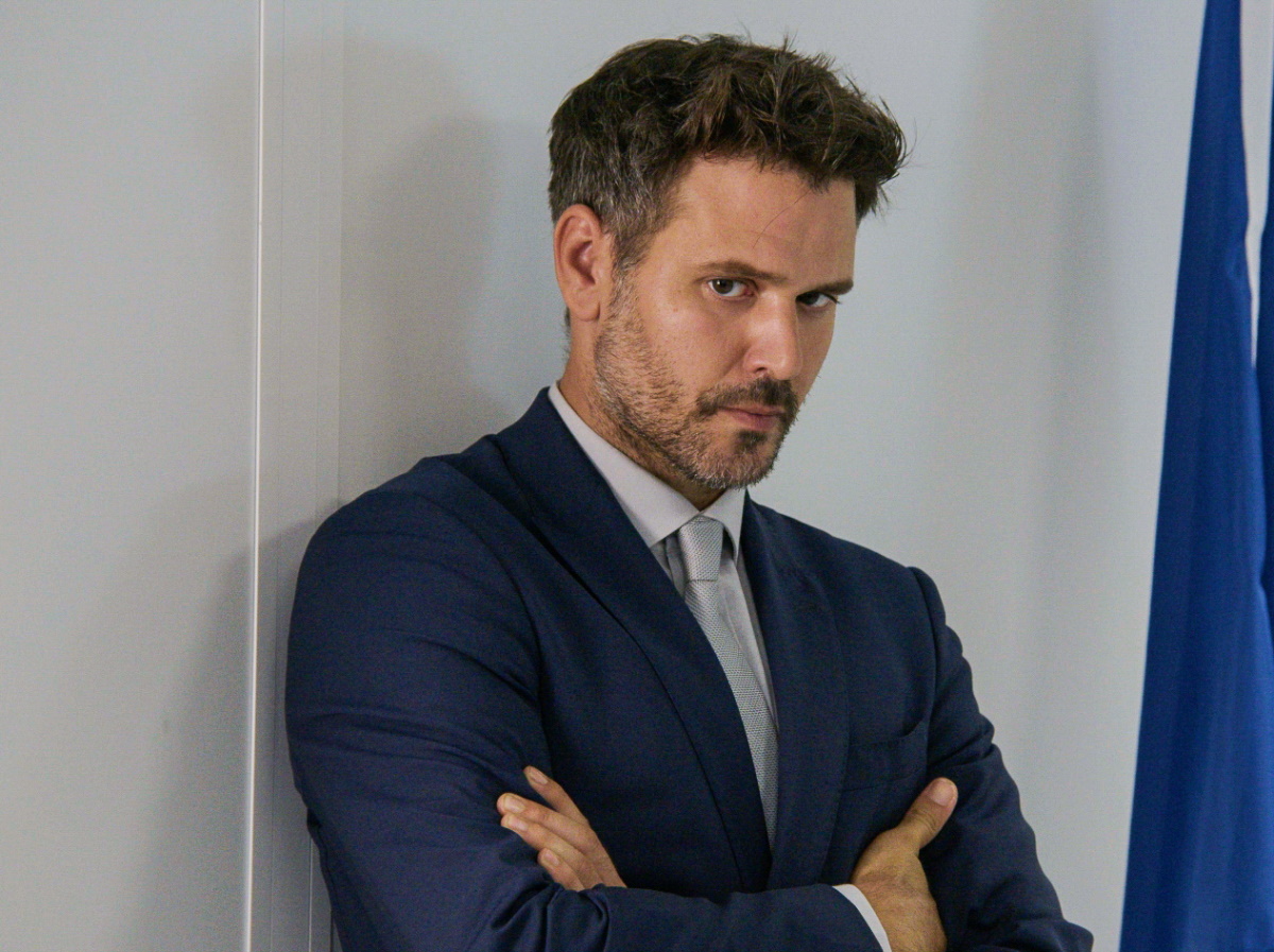 Συγκεκριμένα ποζάρει στην αγκαλιά της νύφης και συναδέλφου του, Ευγενίας Δημητροπούλου, η οποία κοιτά χαμογελαστή τον φωτογραφικό φακό.