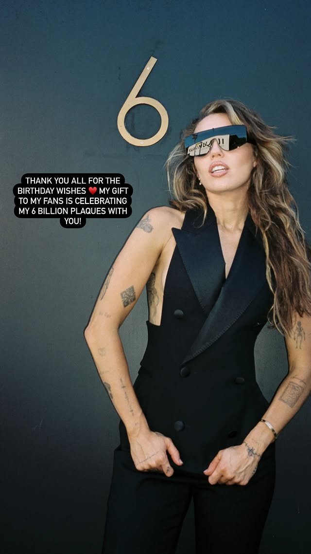Η Miley ευχαρίτησε όλους όσοι της ευχήθηκαν στα Instagram Stories της, γράφοντας: «Σας ευχαριστώ όλους για τις ευχές γενεθλίων».