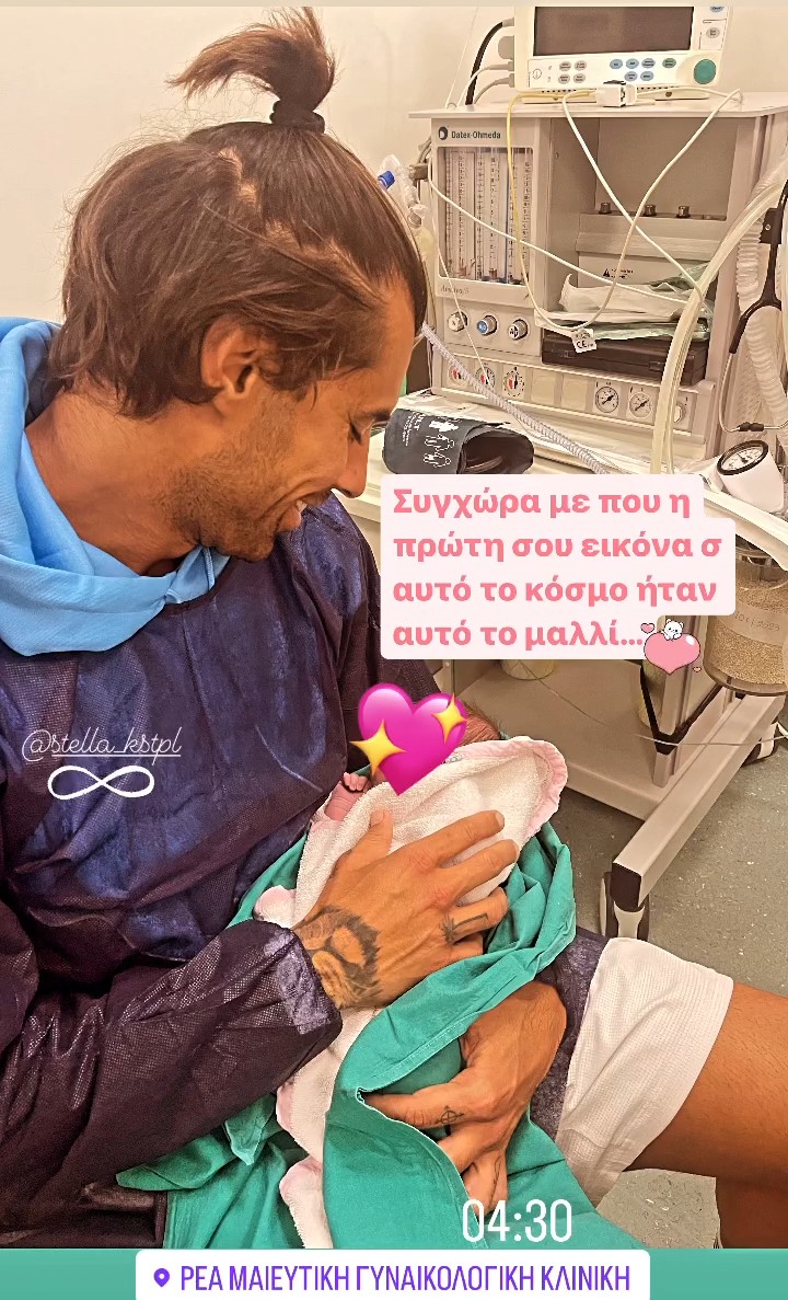 Σε αυτή, ο παλαίμαχος μπασκετμπολίστας φαίνεται να βρίσκεται στην αίθουσα τοκετού και να κρατά στην αγκαλιά του το δεύτερο παιδί του που μόλις έχει γεννηθεί. «Συγχώρα με που η πρώτη σου εικόνα σε αυτόν τον κόσμο ήταν με αυτό το μαλλί» έγραψε με μία δόση χιούμορ.