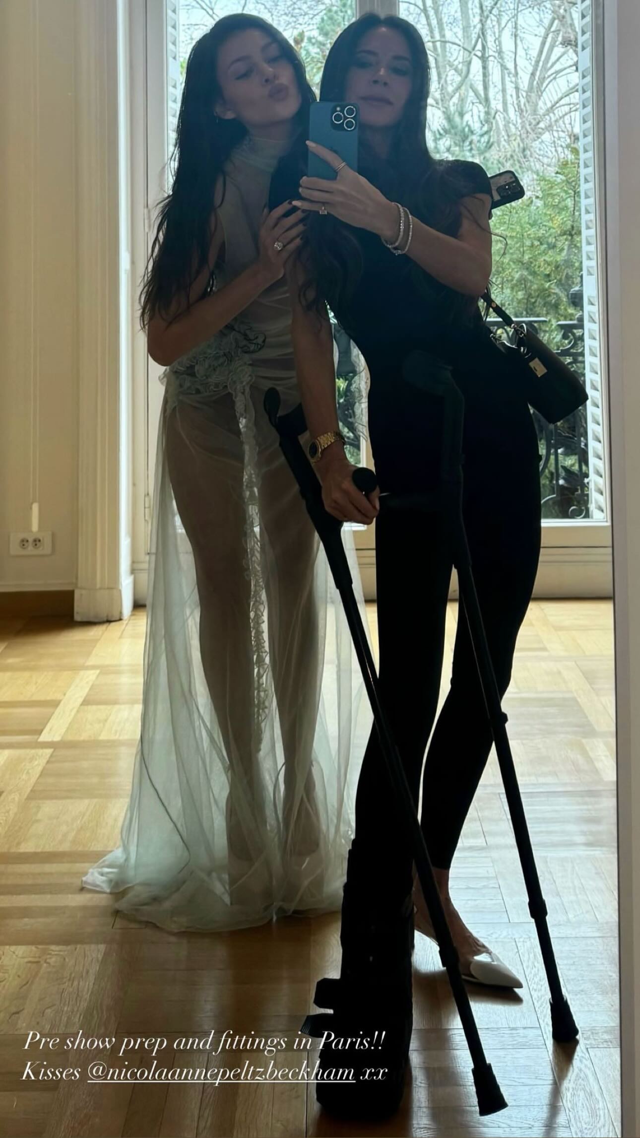 Η σχεδιάστρια μόδας, 49 ετών, η οποία αυτή τη στιγμή κυκλοφορεί με πατερίτσες αφού έσπασε το πόδι της, έκανε υπαινίχθηκε τη συνεργασία τους, καθώς οι δύο γυναίκες πόζαραν για μια γλυκιά selfie στον καθρέφτη τους.