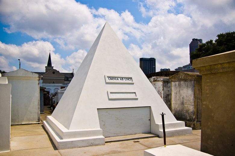 Τον τάφο τον αγόρασε το 2010 και πάνω του είναι γραμμένες οι λατινικές λέξεις “omnia ab uno”, που μεταφράζεται σε “Όλα από ένα”. Ο τάφος βρίσκεται στο St. Louis 1, το παλαιότερο νεκροταφείο της Νέας Ορλεάνης και έχει και μια πυραμίδα ύψους 9 μέτρων.