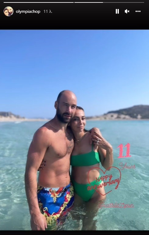 Η Ολυμπία Χοψονίδου κοινοποίησε στον προσωπικό της λογαριασμό στο Instagram μια φωτογραφία στην οποία ποζάρει στην αγκαλιά του Βασίλη Σπανούλη και έγραψε: