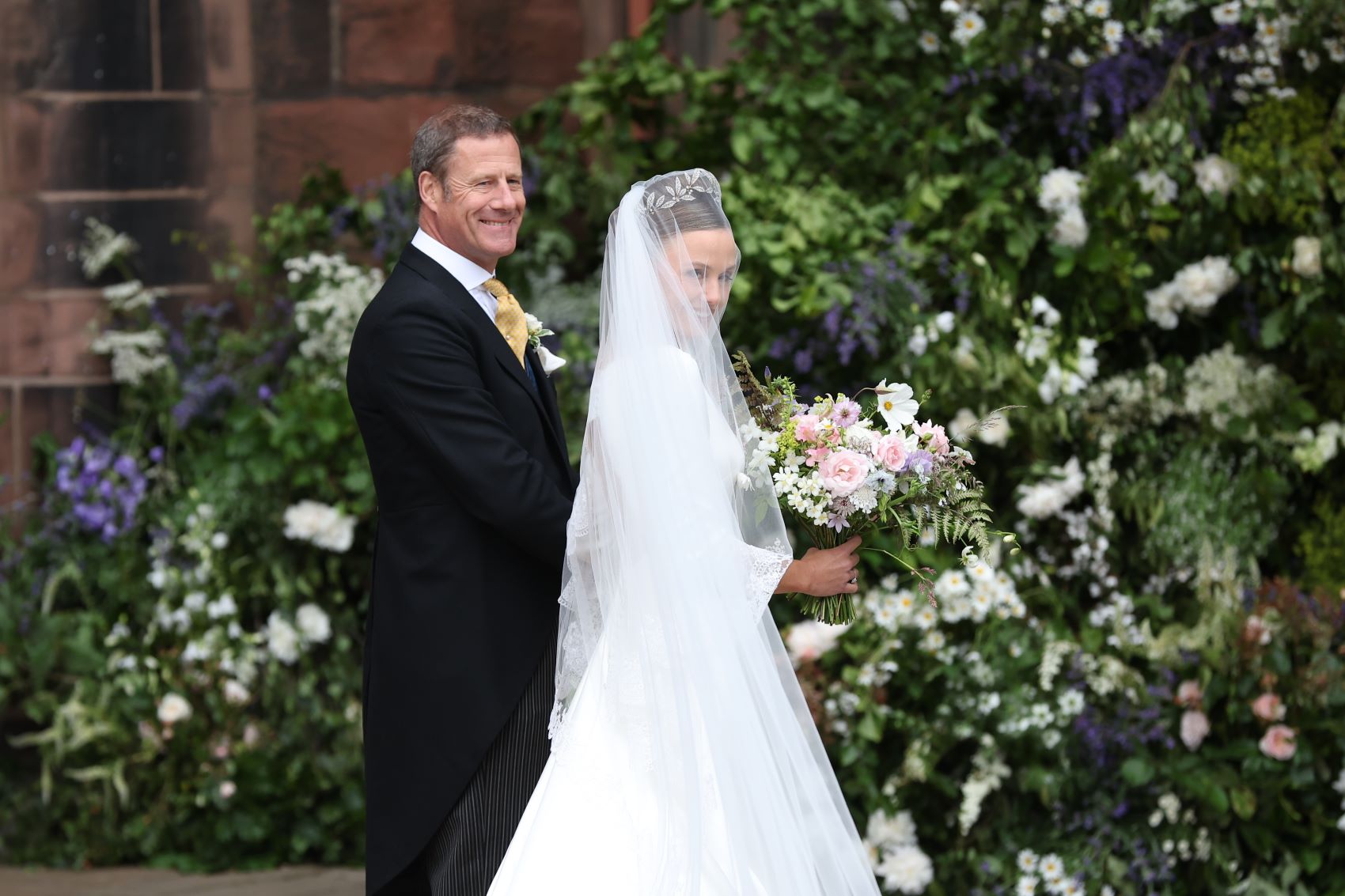 Η νυφική ανθοδέσμη της από λουλούδια από τους κήπους του Eaton Hall, περιλάμβανε πράσινο του αγρού, μαργαρίτες, ίριδες, τριαντάφυλλα, άνθη πορτοκαλιάς, κρίνα και άλλα λουλούδια που συμβολίζουν τον γάμο και την ευτυχισμένη ένωση.