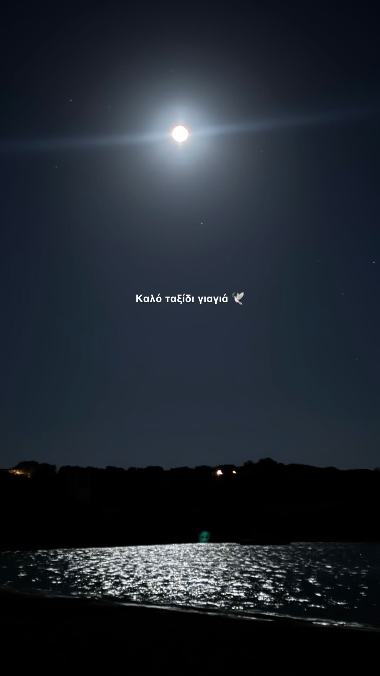 «Καλό ταξίδι γιαγιά» έγραψε δημοσιεύοντας μία φωτογραφία από το φεγγάρι που φωτίζει τη θάλασσα τη νύχτα.