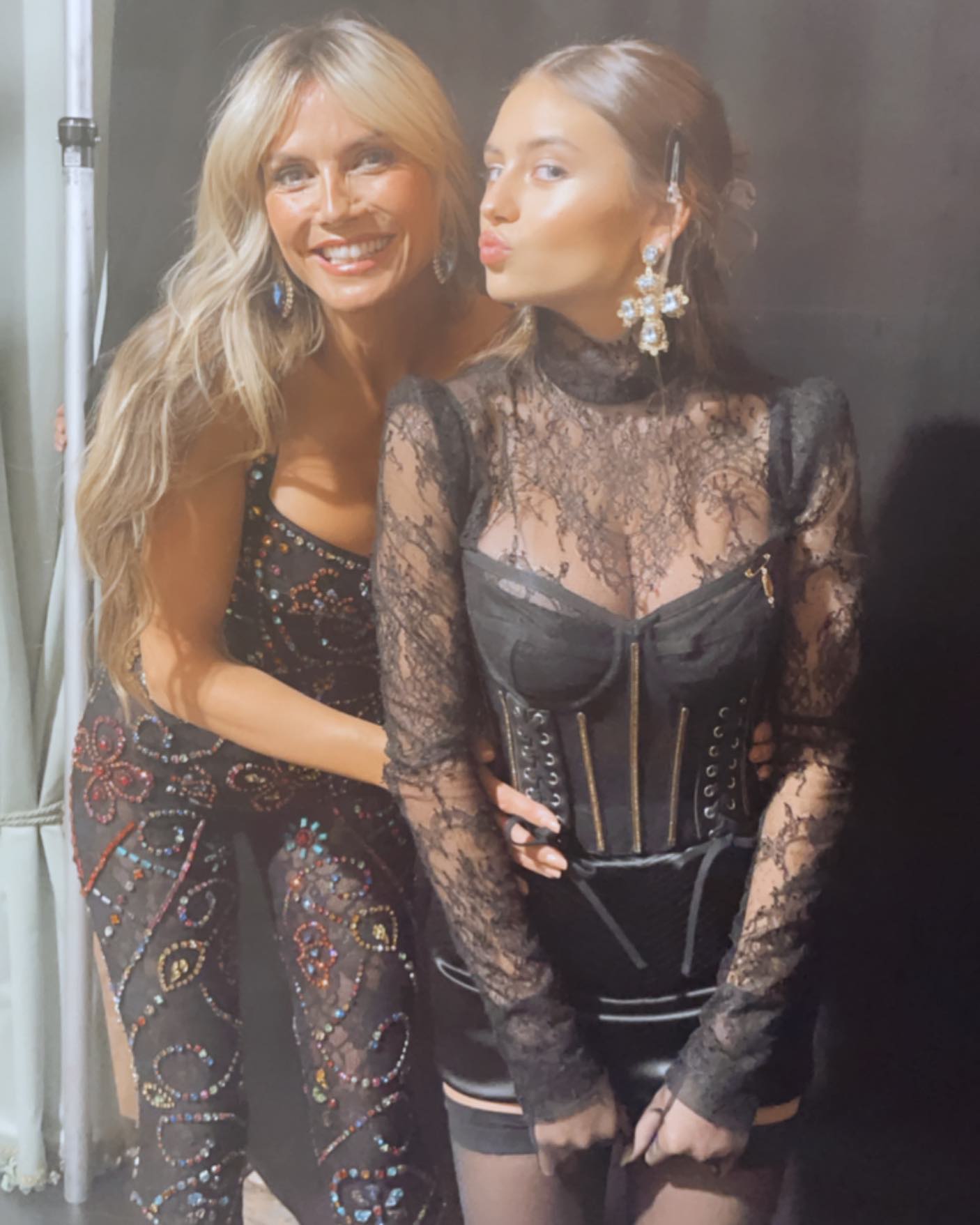 H Leni έλαμψε με το gothic σύνολό της και η μαμά Heidi έλαμψε από χαρά και καμάρι. Σε μια από τις φωτογραφίες που ανέβασε πριν από την επίδειξη πόζαρε στο πλευρό της κόρη της και της ευχήθηκε καλή επιτυχία.