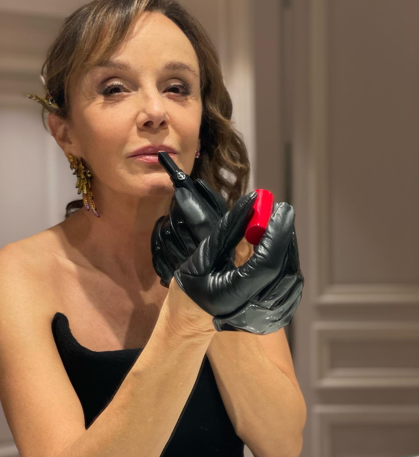 Αυτήν τη φορά ανέβασε μία φωτογραφία στον λογαριασμό της στο instagram όπου ποζάρει φορώντας μόνο ένα σακάκι από κοστούμι επιδεικνύοντας τα καλλίγραμμα πόδια της. Οι διαδικτυακοί της φίλοι έσπευσαν να εκφράσουν τις εντυπώσεις τους και να σχολιάσουν μόνο θετικά τη σέξι πόζα της 59χρονης ηθοποιού.