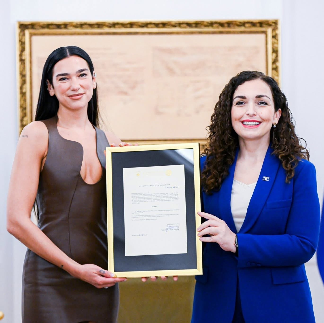 Η σούπερ σταρ της ποπ Dua Lipa, είναι πλέον και επίσημα πολίτης του Κοσόβου. Η τιμητική αυτή διάκριση, που της απονεμήθηκε από την Πρόεδρο της χώρας, γέμισε την καλλιτέχνιδα με «ευγνωμοσύνη», όπως η ίδια δήλωσε.