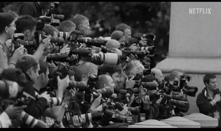 Ωστόσο, στο trailer χρησιμοποιήθηκε μία φωτογραφία στην οποία υποτίθεται ότι ο Harry και η Meghan καταδιώκονται από παπαράτσι. Συγκεκριμένα, στη φωτογραφία απεικονίζονται δεκάδες φωτογράφοι, που αγωνίζονται να βρουν χώρο για να τραβήξουν περιζήτητες φωτογραφίες του Δούκα και της Δούκισσας του Σάσεξ.