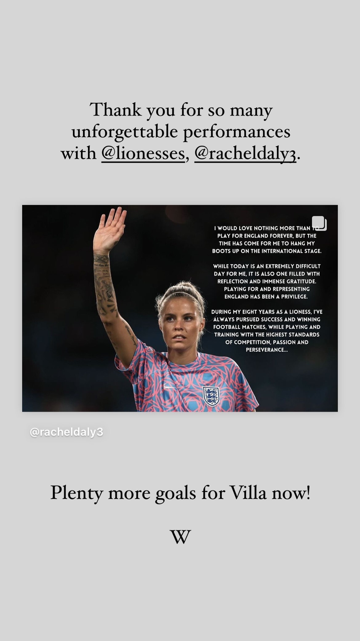 Thank you for so many unforgettable performances with @Lionesses, @RachelDaly3. Plenty more goals for Villa now! W https://t.co/JXmadhxW7L