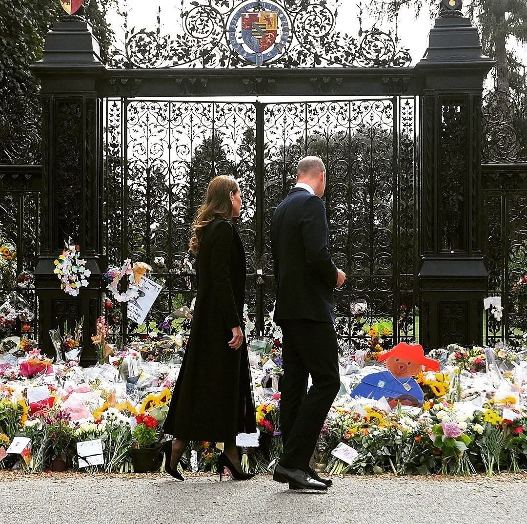Η Kate και ο William πέρασαν περίπου μία ώρα διαβάζοντας μηνύματα του κόσμου και βλέποντας τη θάλασσα λουλουδιών που αφήνουν όλοι στη μνήμη της βασίλισσας. Το ζευγάρι μοιάζει συντετριμμένο και βυθισμένο στις σκέψεις του. Ο William είπε σε μια γυναίκα ότι η διαδικασία της πομπής την Τετάρτη ήταν “πολύ δύσκολη” και “έφερε αναμνήσεις” από τότε που περπατούσε πίσω από το φέρετρο της μητέρας του. Ο ίδιος έμοιαζε βουρκωμένος συγκινώντας τη γυναίκα στην οποία είπε ακόμη: “Μην κλάψεις τώρα, είμαι έτοιμος να κλάψω κι εγώ”.