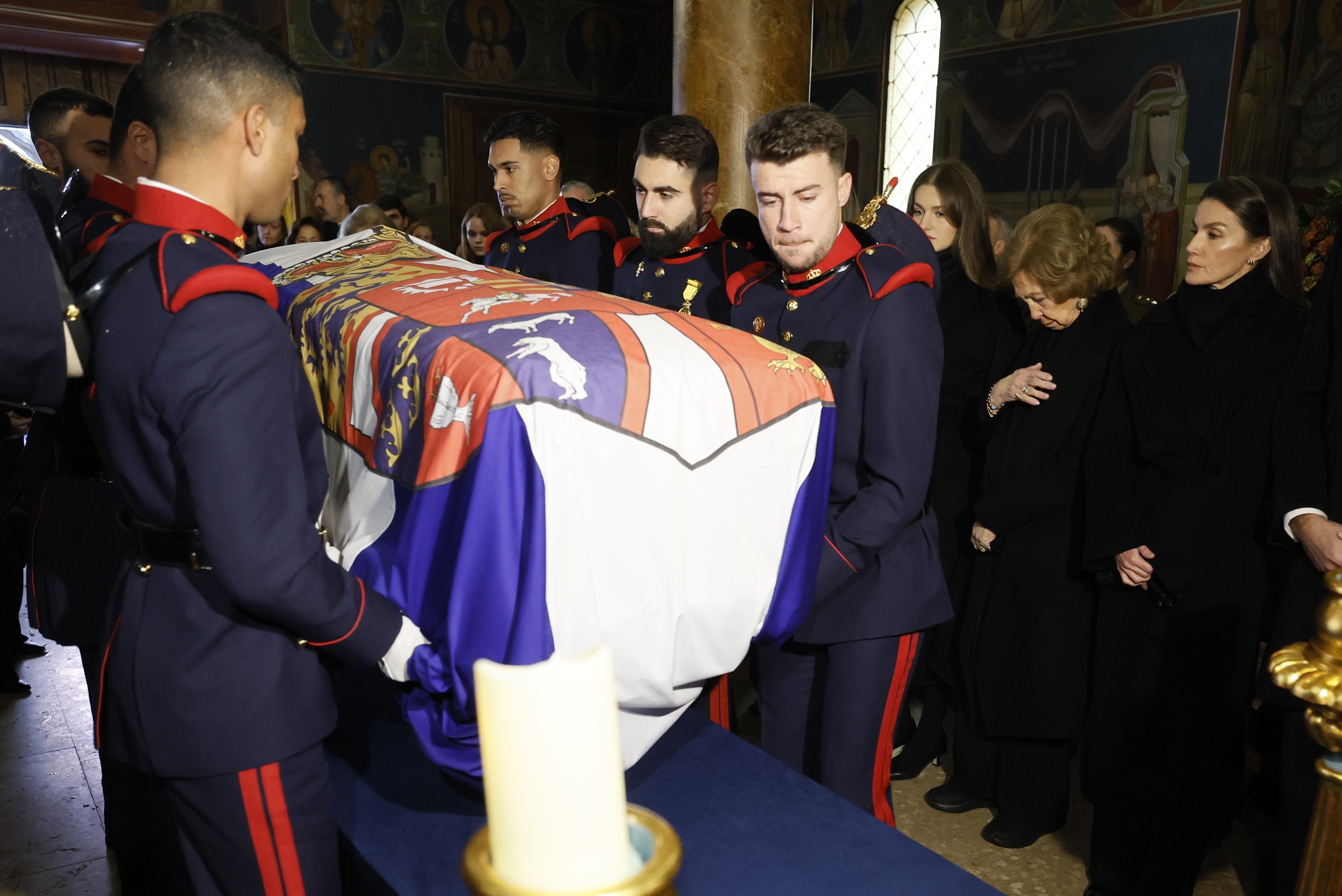 Οι κόρες του βασιλιά Felipe VI και της βασίλισσας Letizia επέστρεψαν ειδικά από τους τόπους όπου σπουδάζουν και διαμένουν αυτήν την περίοδο, προκειμένου να παραστούν σε αυτήν την οικογενειακή τελετή αποχαιρετισμού, η οποία έλαβε χώρα στον Ελληνορθόδοξο Καθεδρικό Ναό των Αγίων Ανδρέα και Δημητρίου στη Μαδρίτη.