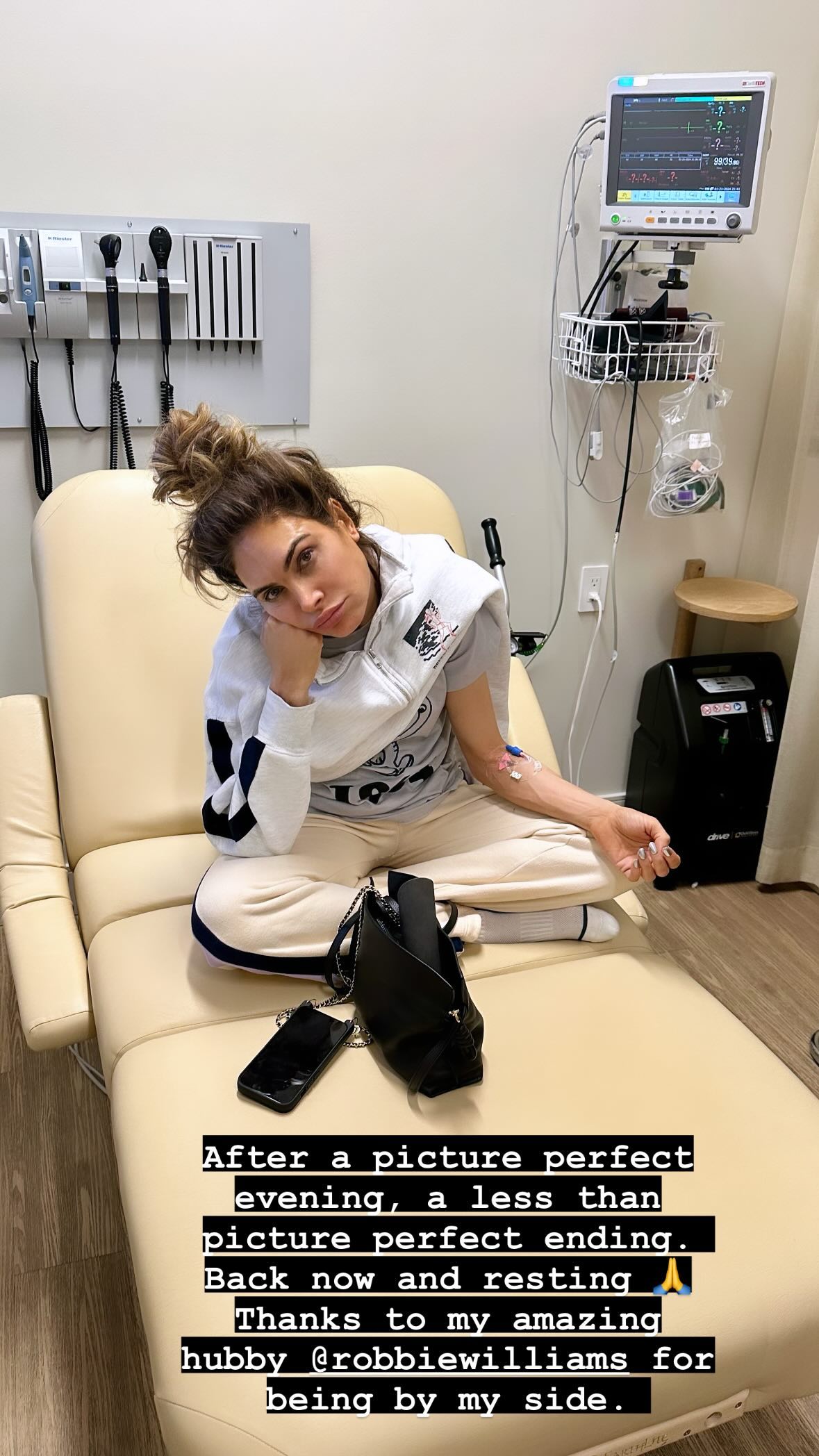 Όπως έγραψε στη λεζάντα της ανάρτησής της, “έπειτα από μια τέλεια βραδιά, ένα όχι και τόσο τέλειο τέλος. Επιστρέφω τώρα και ξεκουράζομαι χάρη στον υπέροχο σύζυγό μου Robbie Williams που είναι στο πλευρό μου“.