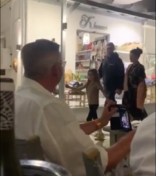 Το Mykonos TV κατέγραψε την οικογένεια σε μια απογευματινή βόλτα, ενώ ο Gosling που υποδύεται τον Ken στην ταινία των Warner Bros και Mattel “Barbie” κάλυπτε τα κατάξανθα μαλλιά του, κάτω από ένα καπελάκι τζόκεϊ.
