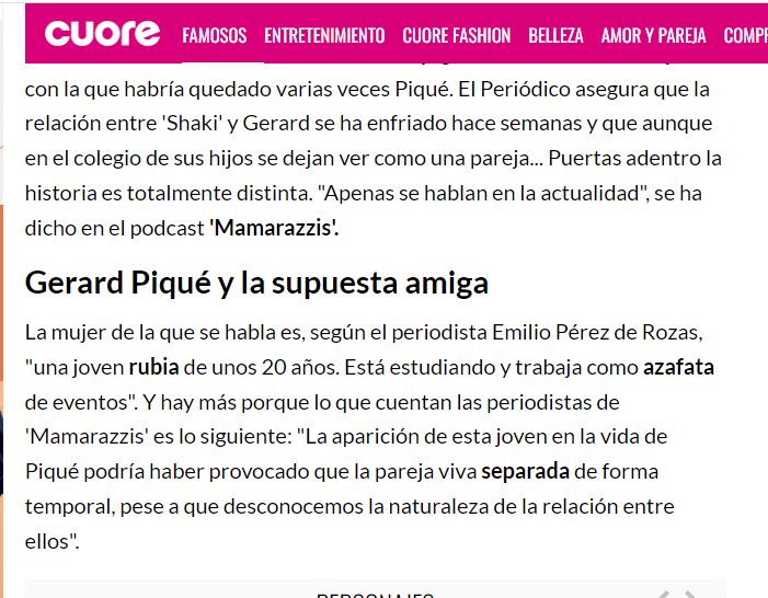 Το περιοδικό Cuore δημοσιεύει σήμερα στοιχεία για τη γυναίκα, με την οποία φέρεται να έπιασε στα “πράσα” η Shakira τον Pique. Όπως αναφέρει χαρακτηριστικά “πρόκειται για μια 20χρονη ξανθιά η οποία σπουδάζει και εργάζεται ως promoter σε εκδηλώσεις”.