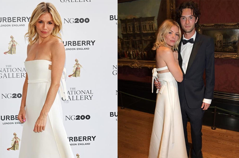 Η ηθοποιός ντύθηκε για την περίσταση με ένα κομψό λευκό στράπλες φόρεμα από τον οίκο Dior, το οποίο είχε δεμένες κορδέλες γύρω από τη μέση. Η σιλουέτα ήταν ξεκάθαρα νυφική, αλλά η πάντα fashion forward Sienna το έκανε να λειτουργήσει άψογα σε μια επίσημη βραδιά.