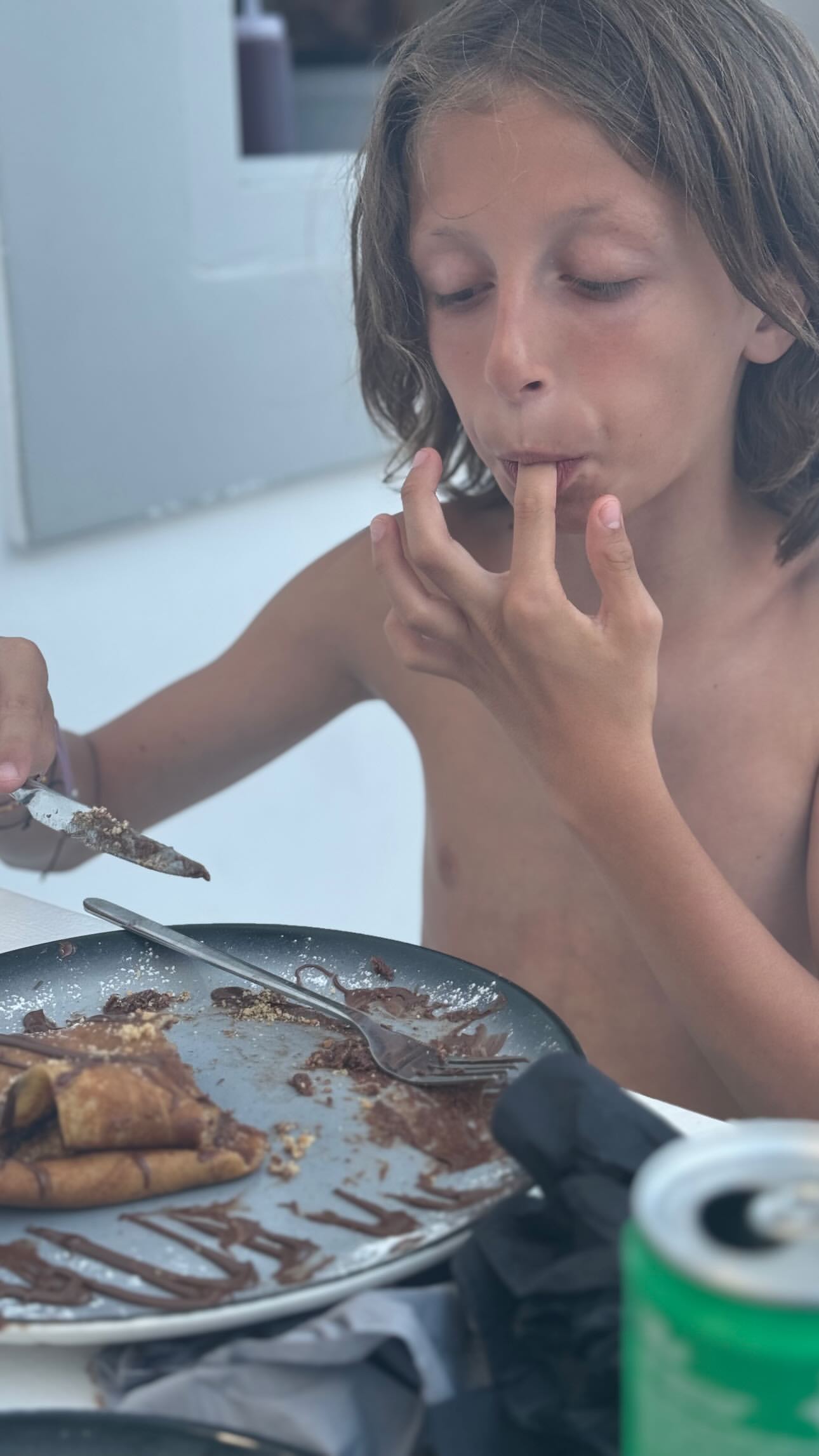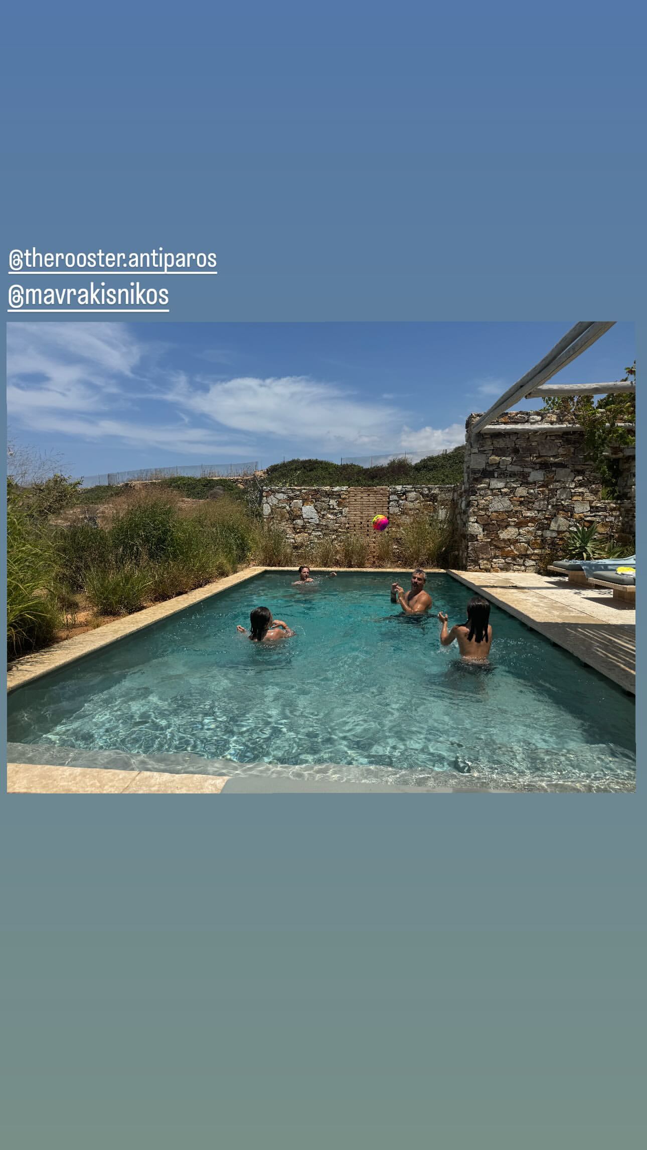 Η ίδια ανάρτησε στον λογαριασμό της πολλά στιγμιότυπα από την καθημερινότητά τους στο νησί. Από τις αναρτήσεις φαίνεται, ότι η οικογένεια διασκεδάζει ιδιαίτερα και ο χρόνος τους μοιράζεται σε γυμναστική, θάλασσα και φαγητό.