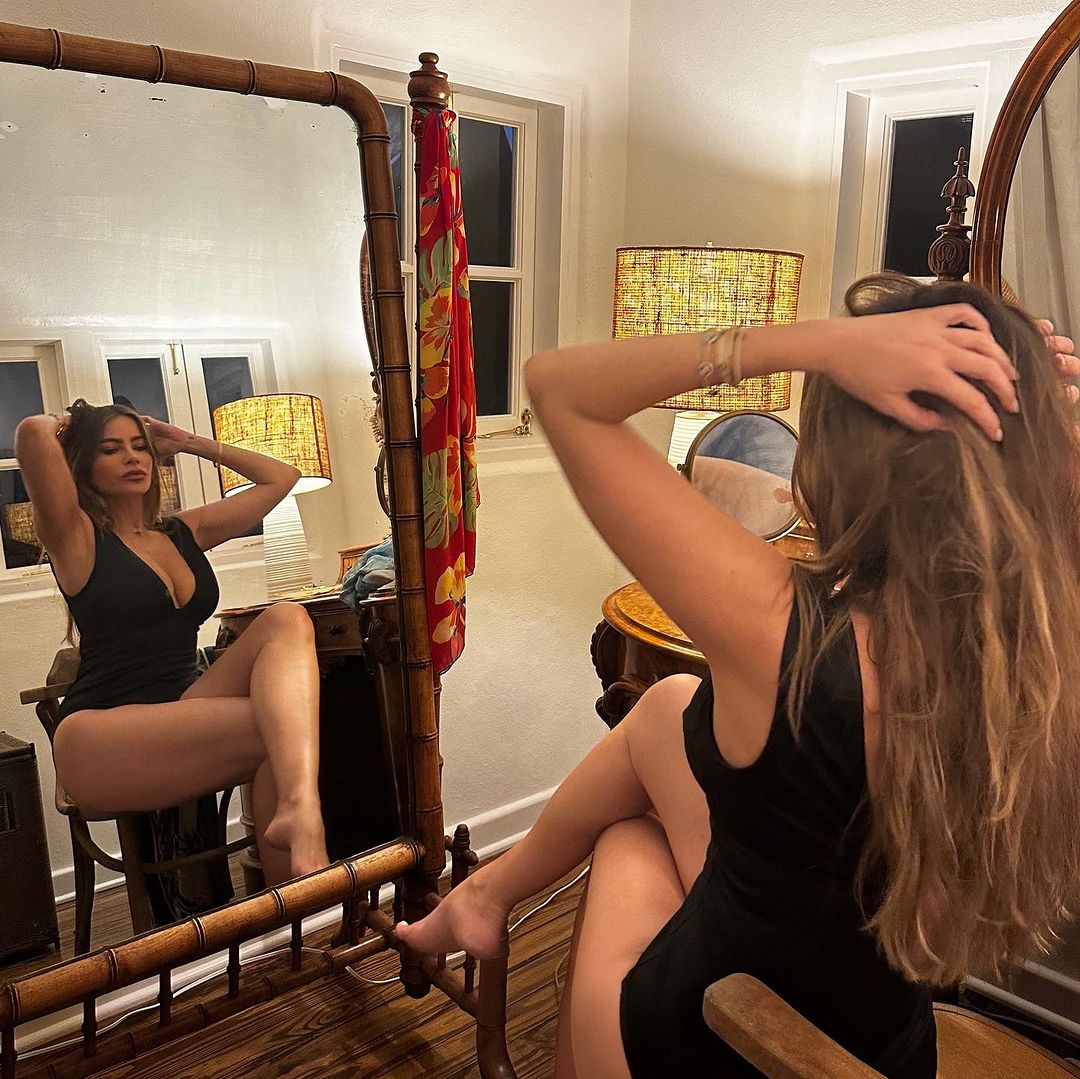 Όπως θα δείτε στα στιγμιότυπα, η Sofia Vergara φορά μόνο ένα μαύρο κορμάκι και ποζάρει στον καθρέπτη. Γι’ άλλη μια φορά δείχνει τις πλούσιες καμπύλες της και το σέξι κορμί της. Τα likes και τα σχόλια από τους θαυμαστές της έπεσαν “βροχή” μέσα σε χρόνο ρεκόρ.