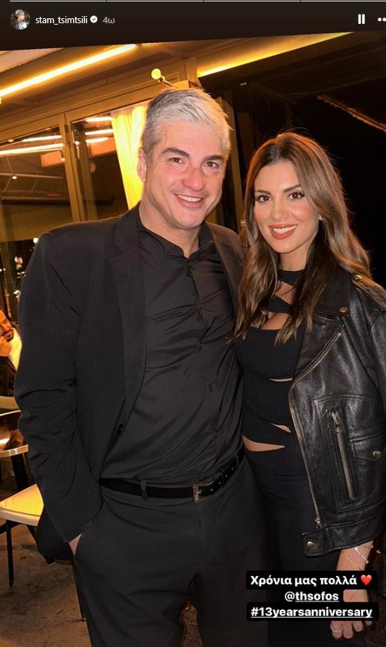 Ξεχωριστή είναι η σημερινή μέρα για την Σταματίνα Τσιμτσιλή και τον σύζυγό της Θέμη Σοφό, καθώς γιορτάζουν την 13η επέτειο του γάμου της. Η παρουσιάστρια θέλησε να μοιραστεί τη χαρά της με τους διαδικτυακούς της φίλους και ανέβασε σε insta story μια κοινή της φωτογραφία με τον άντρα της ζωής της και γνωστό ποινικολόγο, από παλαιότερη βραδινή τους έξοδο και έγραψε στη λεζάντα: