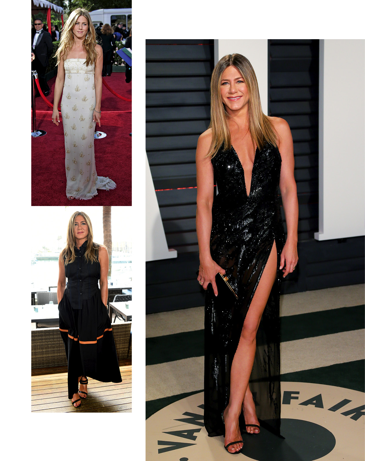 Μπορεί να έχει ταυτιστεί με το little black dress, αλλά η αλήθεια είναι ότι το ντύσιμό της δεν περιορίζεται εκεί. Η Aniston είναι διαχρονικά κομψή και απλή. Είναι ο τύπος που φοράει ένα απλό μακό και το κάνει να φαίνεται υψηλή ραπτική. Το στιλιστικό της ύφος δεν έχει αλλάξει ιδιαίτερα μέσα στα χρόνια, και αυτό μας αρέσει, αφού δείχνει σταθερότητα και μια γυναίκα που ξέρει τι θέλει και τι της ταιριάζει. Οι εμφανίσεις της είναι επιλεκτικές, ενώ για το στιλ της κρατά καλά όλα τα μυστικά η επί χρόνια στιλίστριά της, Nina Hallworth – η οποία, σε περίπτωση που δεν το γνωρίζατε, ντύνει και τον Brad Pitt.