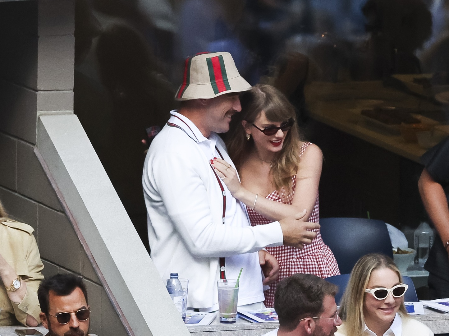 Από την πλευρά του, ο Travis φαινόταν χαλαρός με ένα γκρι πουκάμισο πάνω από ένα λευκό μπλουζάκι με ένα τζιν. Ο σταρ του NFL έχει αφήσει τα μαλλιά του να μεγαλώσουν λίγο περισσότερο μετά το Super Bowl και είχε μούσι, ενώ φορούσε γυαλιά με σκούρο σκελετό.