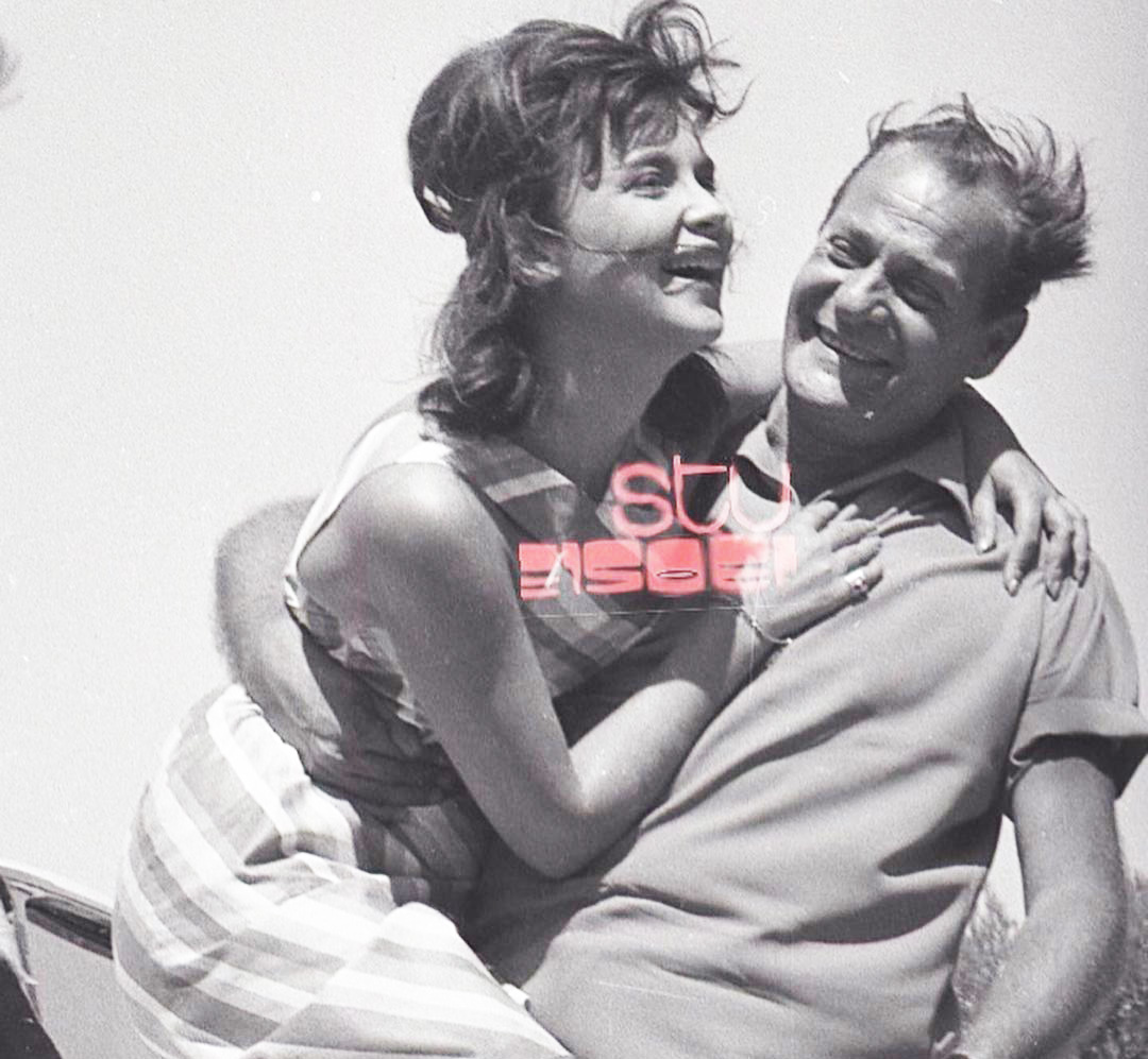 Η ηθοποιός απαθανατίζεται χαμογελαστή με τον επί χρόνια συμπρωταγωνιστή της, τον αείμνηστο Λάμπρο Κωνσταντάρα, σε ασπρόμαυρα στιγμιότυπα.