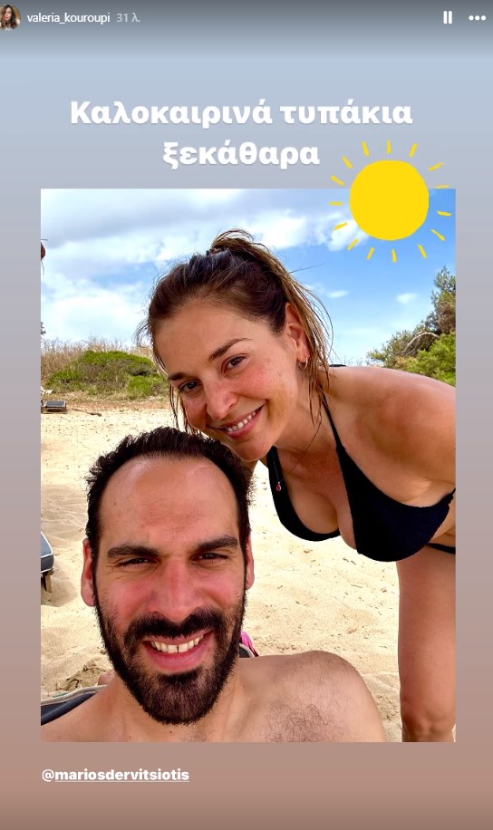 Αυτές τις μέρες το ερωτευμένο ζευγάρι απολαμβάνει τις διακοπές του στην Πύλο. Η Βαλέρια Κουρούπη δημοσίευσε σε Insta Story τρεις φωτογραφίες, στη μία εκ των οποίων η ίδια και ο Μάριος Δερβιτσιώτης ποζάρουν χαμογελαστοί και ευτυχισμένοι.