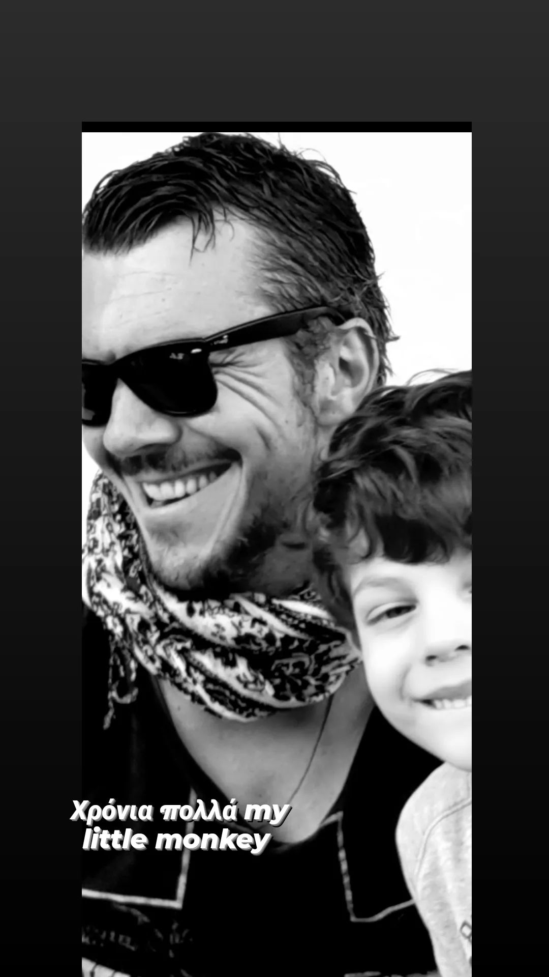 «Χρόνια πολλά, χρόνια γεμάτα», έγραψε η ηθοποιός, τραγουδίστρια και συγγραφέας συνοδεύοντας την ευχή της με μια τρυφερή φωτογραφία μαζί του. Με μια λιτή ευχή είπε τα χρόνια πολλά και ο Ιωάννης Παπαζήσης ο οποίος έγραψε «χρόνια πολλά my little monkey».
