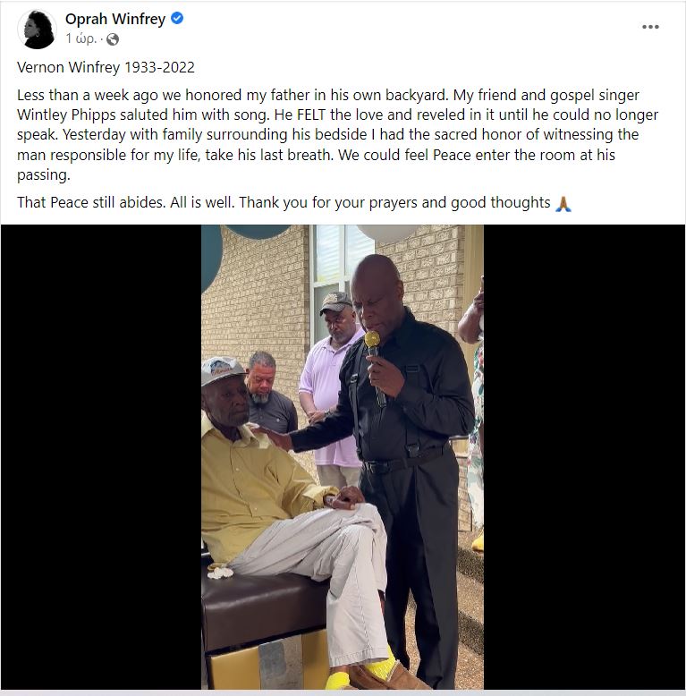 Με ανάρτησή της στα social media η Oprah αποχαιρέτησε τον πατέρα της: