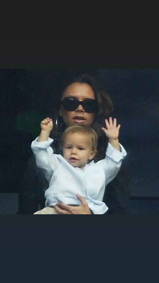 Στη συνέχεια δημοσίευσε ακόμη μία φωτογραφία τους απ’ όταν ήταν μικρός, παρακολουθώντας τον πατέρα του, David Beckham, σε έναν ποδοσφαιρικό αγώνα.