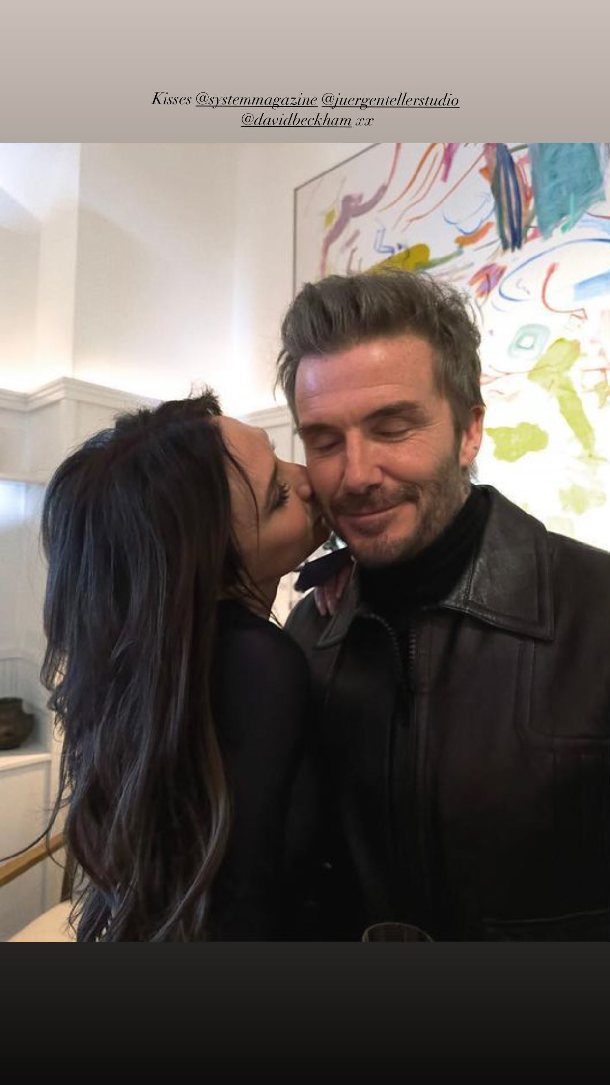 H Victoria απαθανατίστηκε να δίνει ένα φιλί στο μάγουλο του συζύγου της δείχνοντας συνεπαρμένη, ενώ ο David έκλεινε τα μάτια του και χαμογελούσε απαλά.