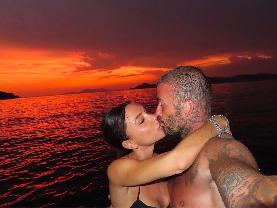Η φωτογραφία με το τρυφερό ενσταντανέ που κατέγραψαν οι Victoria και David Beckham να ανταλλάσσουν ένα τρυφερό φιλί με φόντο τα υπέροχα χρώματα του ηλιοβασιλέματος, μοιάζει με καρτ ποστάλ!