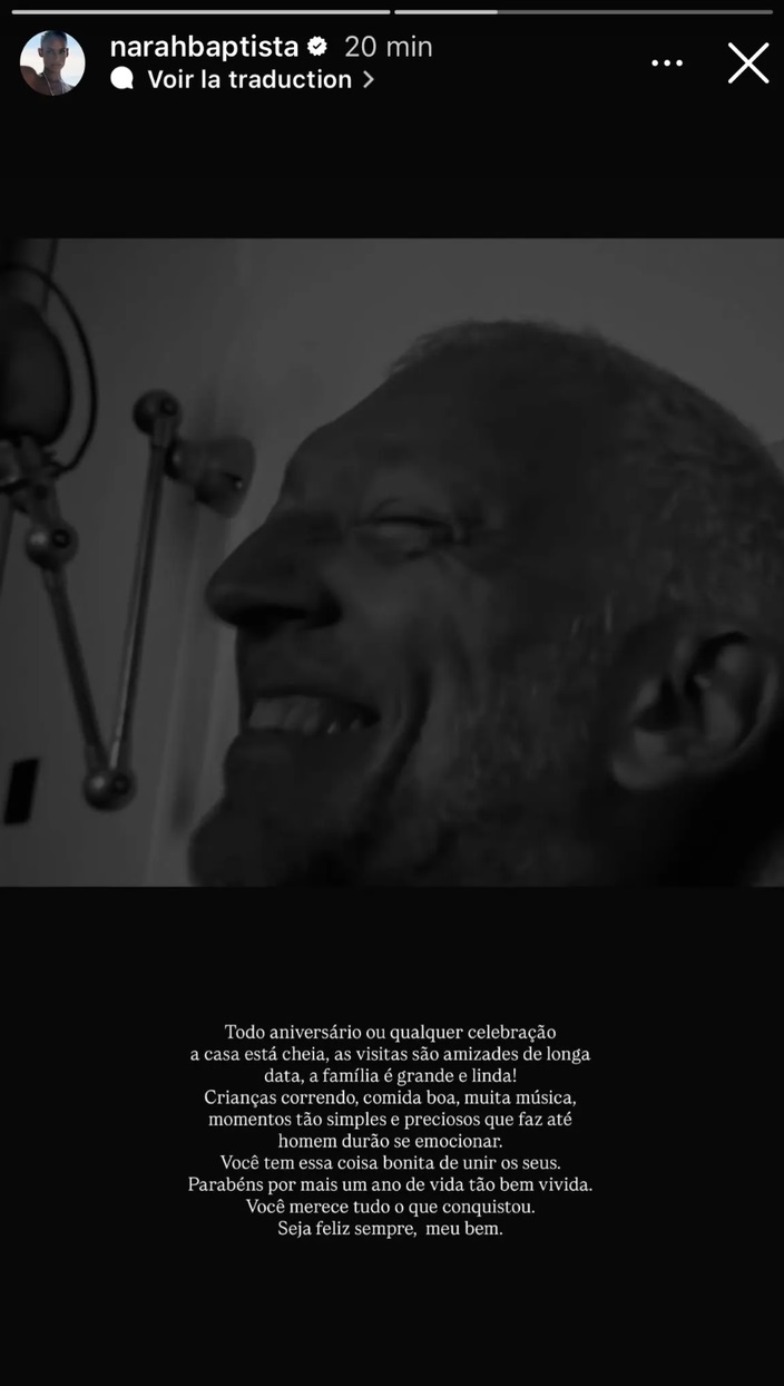 Και η νεαρή γυναίκα κατέληξε: «Συγχαρητήρια γι’ αυτήν τη νέα χρονιά της ζωής σου που ήταν τόσο γεμάτη. Αξίζεις όλα όσα έχεις καταφέρει. Να είσαι πάντα ευτυχισμένος, αγάπη μου». Σχετικά διακριτικοί από την αρχή της σχέσης τους τον Ιανουάριο του 2024, η Narah Baptista και ο Vincent Cassel φαίνεται να ζουν δυνατά τον έρωτά τους και ανταλλάσσουν τακτικά μηνύματα αγάπης μέσω των κοινωνικών δικτύων.
