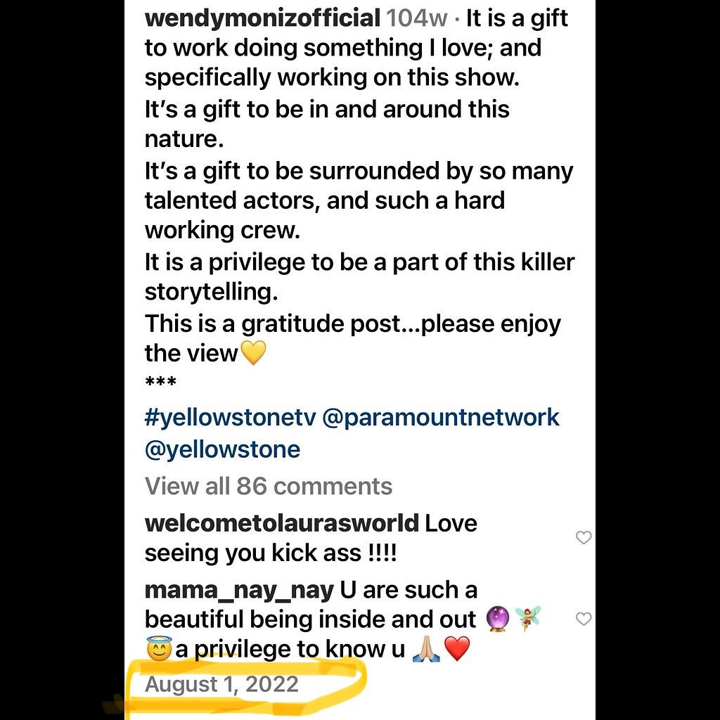 «Η σειρά ολοκληρώνεται για μένα και έχω όλα τα συναισθήματα, συγκίνηση, περηφάνια, ευγνωμοσύνη για να αναφέρω μερικά» έγραψε η ηθοποιός, αναρτώντας φωτογραφίες από τα παρασκήνια των γυρισμάτων. «Τι όμορφη εμπειρία που είχα εδώ, απλά είμαι απίστευτα τυχερή που έχω δουλέψει με τόσους πολλούς ταλαντούχους, αφοσιωμένους και ευγενικούς ανθρώπους από το 2017. Ολοκλήρωσα την τελευταία μου σκηνή 1η Αυγούστου, και μετά θυμήθηκα ότι είχα κοινοποιήσει μια ανάρτηση ευγνωμοσύνης…κοιτάζοντας πίσω, ήταν την ίδια ημερομηνία πριν από δύο χρόνια» πρόσθεσε.