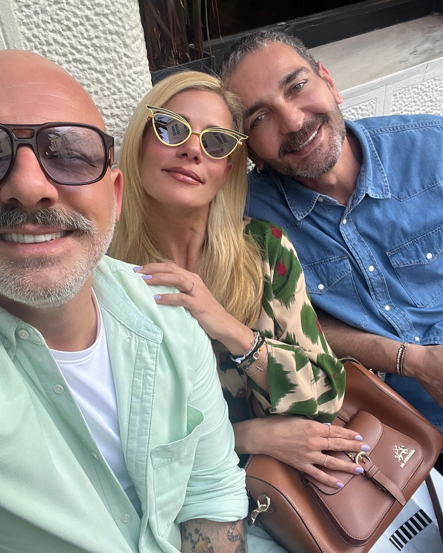 Η παρέα πόζαρε μαζί με την εντυπωσιακή Ζέτα Μακρυπούλια να φορά ένα υπέροχο πουκάμισο σε μπεζ και πράσινους τόνους, ιδανική επιλογή για αυτήν την περίοδο.