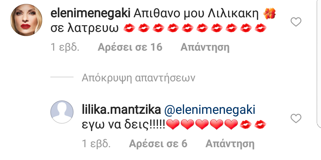 Φυσικά, η μητέρα του Μάκη απάντησε «@elenimenegaki εγω να δεις!!!!!», αποδεικνύοντας πως η σχέση τους είναι υπέροχη.