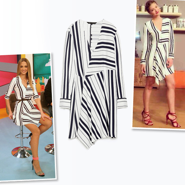 Όπως σας έχουμε ήδη πει, την ερχόμενη άνοιξη οι ρίγες επανέρχονται στο προσκήνιο και φοριούνται με πολλούς διαφορετικούς τρόπους, είτε παραπέμποντας στο ναυτικό στοιχείο είτε στην op art, που επίσης θα είναι πολύ δημοφιλής σε ρούχα και αξεσουάρ όπως θα παρατηρήσετε. Συχνά παρατηρούμε ότι κάποιες celebrities επιλέγουν τα ίδια κομμάτια, φορώντας τα βέβαια η κάθε μία με τρόπο που ταιριάζει στο στιλ και την προσωπικότητά της. Έτσι έγινε και με αυτό το πολύ stylish, ριγέ φόρεμα το οποίο ανήκει στην εταιρεία Zara και μπορείτε να το βρείτε εδώ αλλά και στα καταστήματα της εταιρείας.