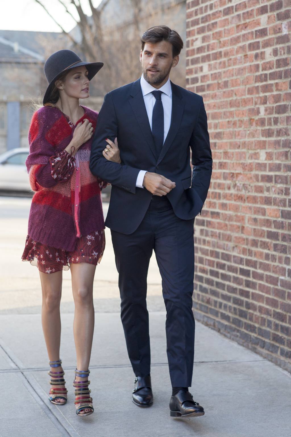 Η Olivia φόρεσε μπορντό see-through φόρεμα με αστέρια με μοχέρ ριγέ cardigan και τακούνια με πολύχρωμες μεταλλικές ρίγες, όλα από την συλλογή Hilfiger Collection Spring 2015. Ο Johannes φόρεσε μπλε σκούρο μονόκουμπο κοστούμι, λευκό πουκάμισο, μεταξωτή γραβάτα σε midnight blue χρώμα και μαύρα monks, όλα από την συλλογή Tommy Hilfiger Tailored Spring 2015.