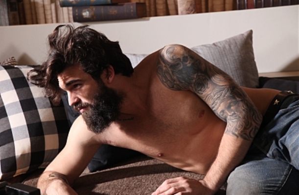 Σε αυτό τον έχουν βοηθήσει πολύ, εκτός από την ομορφιά και το καλογυμνασμένο του κορμί, τα μούσια του και τα τατουάζ του.