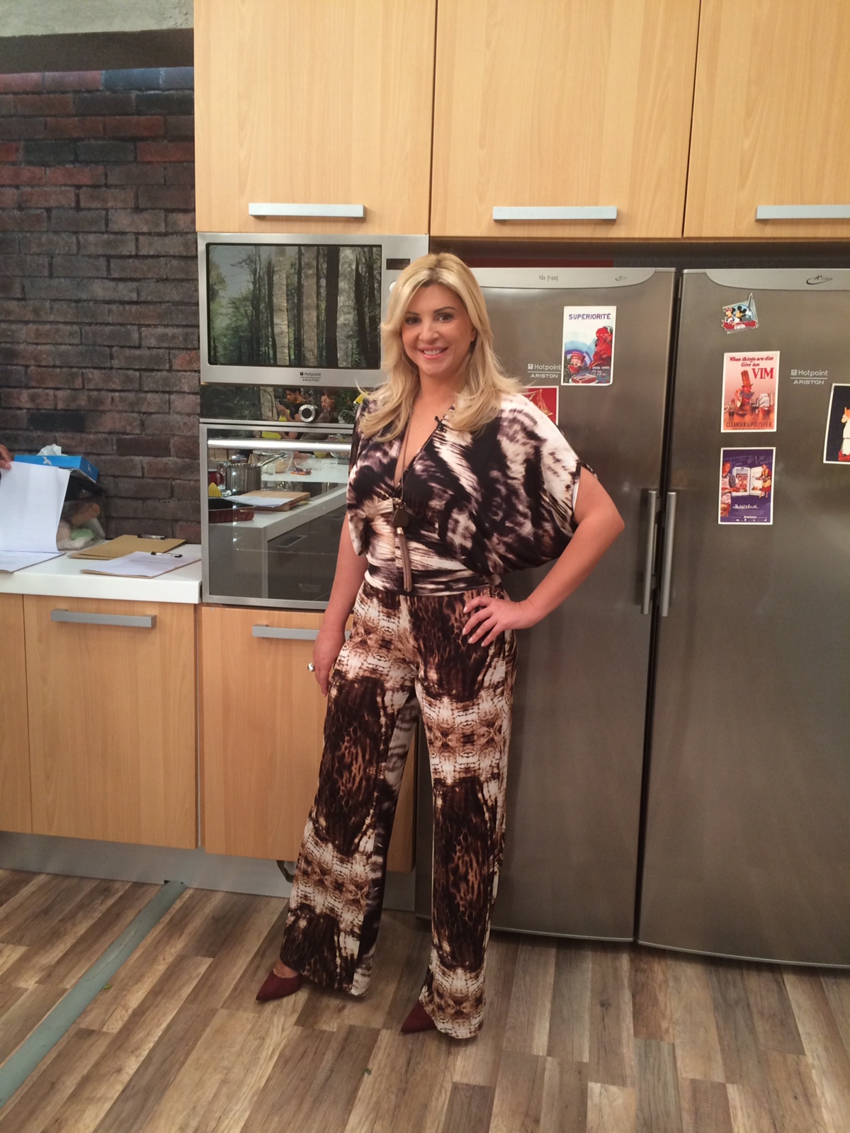 Η Χριστίνα Πολίτη είναι και σήμερα στην πρωινή παρέα του Mega με ένα σύνολο που μας αρέσει πολύ. Συγκεκριμένα επέλεξε μία ολόσωμη φόρμα, σε print με γήινες αποχρώσεις από την εταιρεία C THROU την οποία συνδύασε με παπούτσια Silia D. To ιδιαίτερο κόσμημα που φόρεσε και έδωσε ξεχωριστό χαρακτήρα στο ντύσιμό της είναι Manolo.
