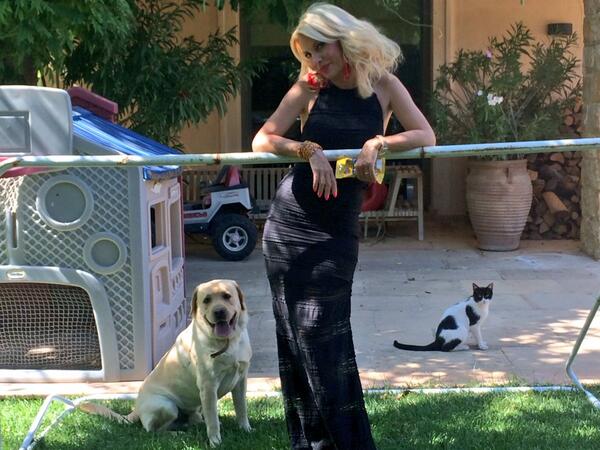 H Ελένη Μενεγάκη, που ολοκλήρωσε τον κύκλο της φετινής της εκπομπής πριν δύο εβδομάδες, δημοσίευσε πριν από λίγη ώρα στο Twitter μία φωτογραφία όπου απεικονίζεται σε ένα κήπο όπου κυριαρχούν τα παιχνίδια, μεταξύ τους ένα αυτοκινητάκι και ένα σπιτάκι για παιδάκια- φανερώνοντας έτσι ότι πρόκειται για τον κήπο του σπιτιού της- στην οποία ποζάρει μαζί με τον σκύλο της –ένα Labrador ονόματι Βίκτωρας– και τη γάτα της –την οποία δεν την έχουμε ξαναδεί και την αποκαλεί Λάκη. Η όμορφη παρουσιάστρια εμφανίζεται όμορφη ξεκούραστη, φορώντας ένα μπλε μάξι φόρεμα με λεπτομέρειες από δαντέλα, και τους αγαπημένους της κοραλλί κρίκους.