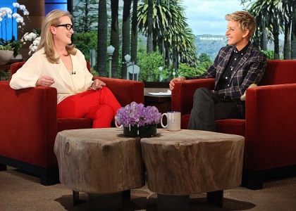 Η ηθοποιός λίγες ημέρες μετά την υποψηφιότητά της για Όσκαρ Α’ Γυναικείου ρόλου για τον «Αύγουστο», την 18η στην ιστορία της, πήγε στην εκπομπή της Ellen DeGeners -θα παρουσιάσει την 86η Απονομή των βραβείων Οσκαρ στις 2 Μαρτίου- και έπαιξε μια σειρά από διαφορετικούς ρόλους: διάβασε μια συνταγή μαγειρικής με sexy τρόπο, ένα δελτίο κίνησης στου δρόμους σαν να ήταν μια γυναίκα ετοιμόγεννη και μια σελίδα από τη Wikipedia σαν ένας οργισμένος έφηβος.