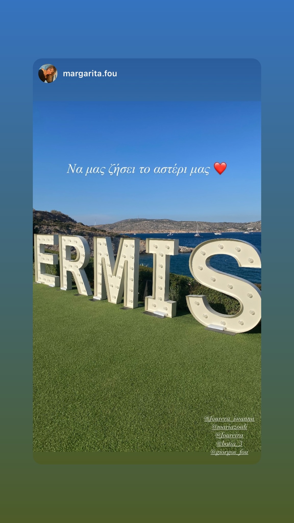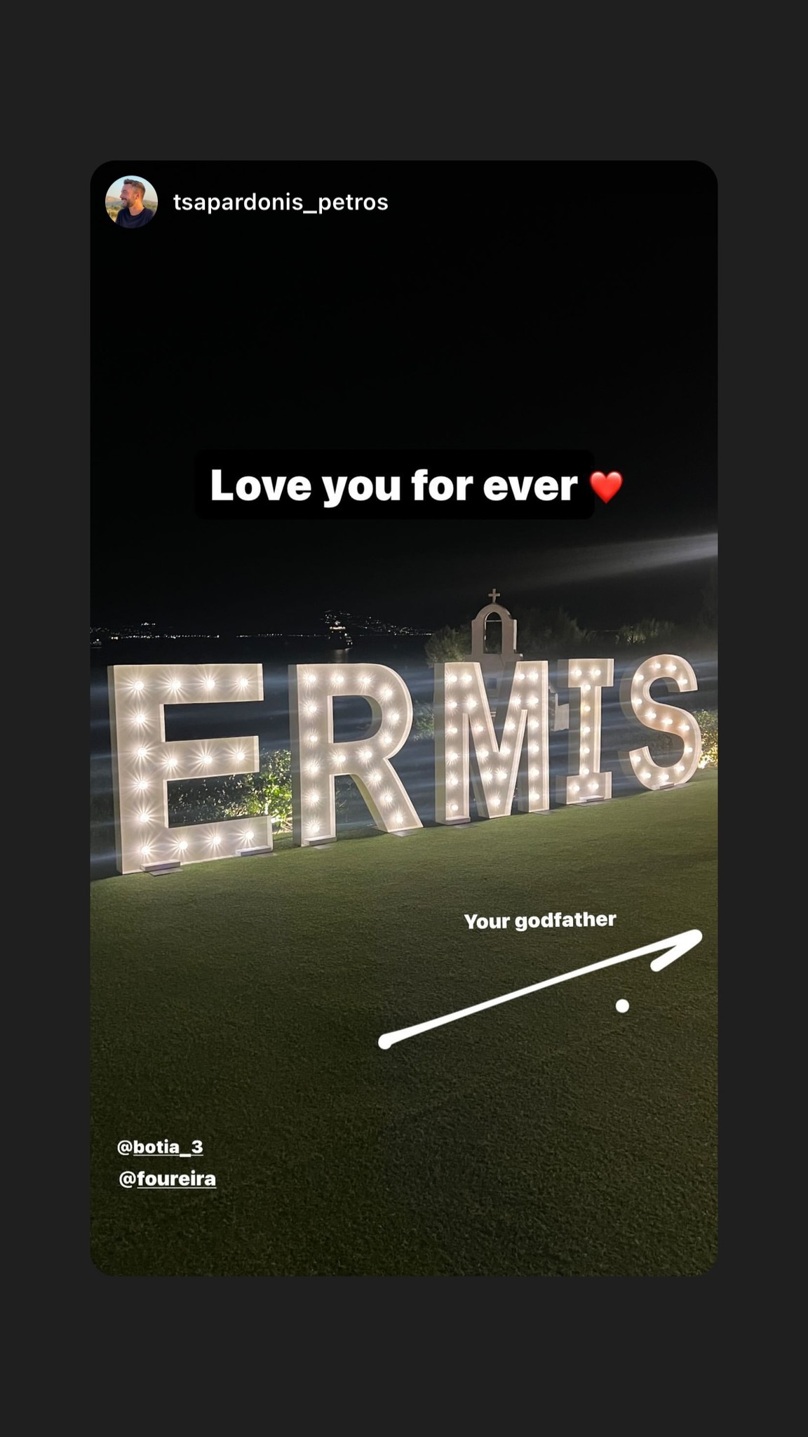 Η Ελένη Φουρέιρα και ο Αλμπέρτο Μποτία γιορτάσαν με χαρά και συγκίνηση τη βάφτιση του γιου τους. Το Σάββατο 8 Ιουνίου διοργάνωσαν ένα μοναδικό πάρτι στα νότια προάστια. Το όνομα που έδωσαν στο παιδί τους είναι Ερμής. Μετά το μυστήριο της βάφτισης, γιόρτασαν την ξεχωριστή μέρα με συγγενείς, φίλους και συνεργάτες τους από τον καλλιτεχνικό χώρο.
