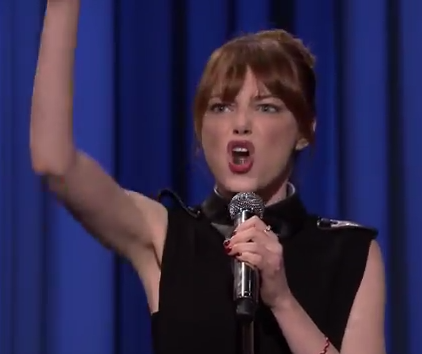 Δεν περνά ημέρα τελευταία που η εκρηκτική Emma Stone να μην απασχολεί τα μέσα είτε με τις ενδυματολογικές είτε με τις beauty επιλογές της. Την στιγμή όμως που εμείς μελετάμε την γκαρνταρόμπα της και τα νέα της χτενίσματά της εκείνη κάνει την ανατροπή και μας αποδεικνύει πως διαθέτει και άλλα ταλέντα. Συγκεκριμένα, η πρωταγωνίστρια του «Spiderman» φορώντας ένα cut-out μαύρο φόρεμα Gucci, πραγματοποίησε μία ξεκαρδιστική εμφάνιση στο «The Tonight Show Starring Jimmy Fallon» και πρόβαλε με περηφάνια τις υποκριτικές, φωνητικές και ραπ ικανότητές της. Για να καταλάβετε τι εννοούμε δείτε το video: