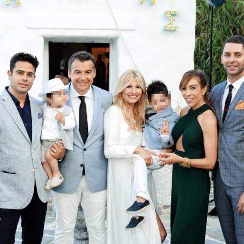 Η βάφτιση του γιου τους στο Νησί των Ανέμων έγινε τον Ιούλιου του 2015. Το δεύτερο παιδάκι της οικογένειας πήρε το όνομα Σπύρος, όπως ο πατέρας του εφοπλιστή. Η βάφτιση έγινε στην εκκλησία του Αγίου Γεωργίου, στο ξενοδοχειακό συγκρότημα Santa Marina στον Ορνό, με νονούς την Μαρίλη Κανελλάκη και τον σύζυγό της.