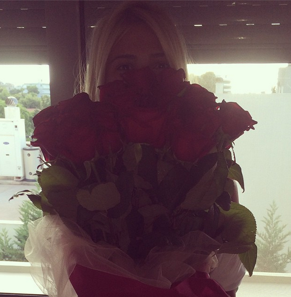 Η παρουσιάστρια που το τελευταίο διάστημα ετοιμάζεται πυρετωδώς για την πρεμιέρα της εκπομπής της, έκανε ένα διάλειμμα από το βεβαρημένο πρόγραμμά της και ευχαρίστησε τους διαδικτυακούς τους φίλους για της ευχές τους αλλά και την εταιρία BSB που της έστειλε ένα μπουκέτο με κατακόκκινα τριαντάφυλλα.
